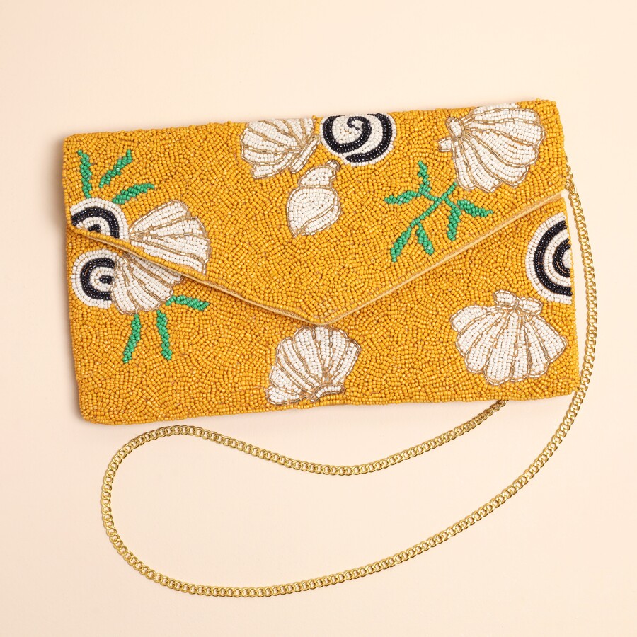 • A Beaded Mustard Shell Envelope Clutch Bag