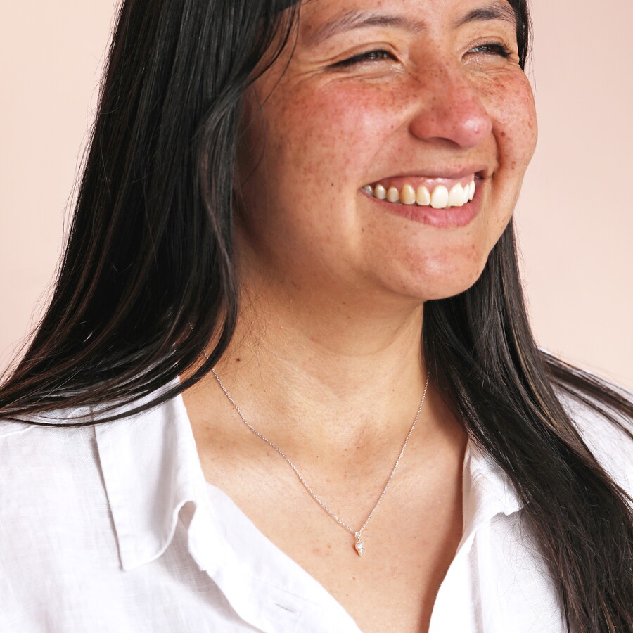 Dimensions: necklace length - 38cm (15") with a 5cm extender chain pendant width 3mm x height 8mm x depth 3mm