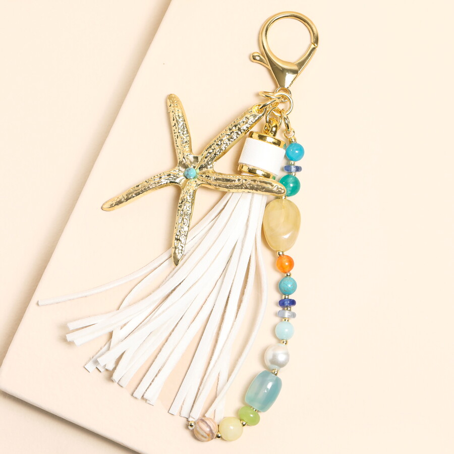 Made from: leather, semi-precious stones, acrylic, glass, brass