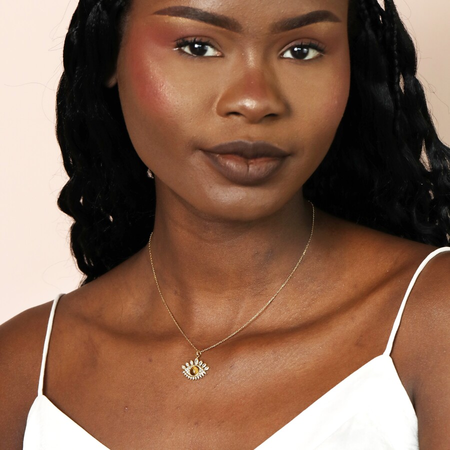 Made from: 14ct gold plated stainless steel, tiger eye stone
