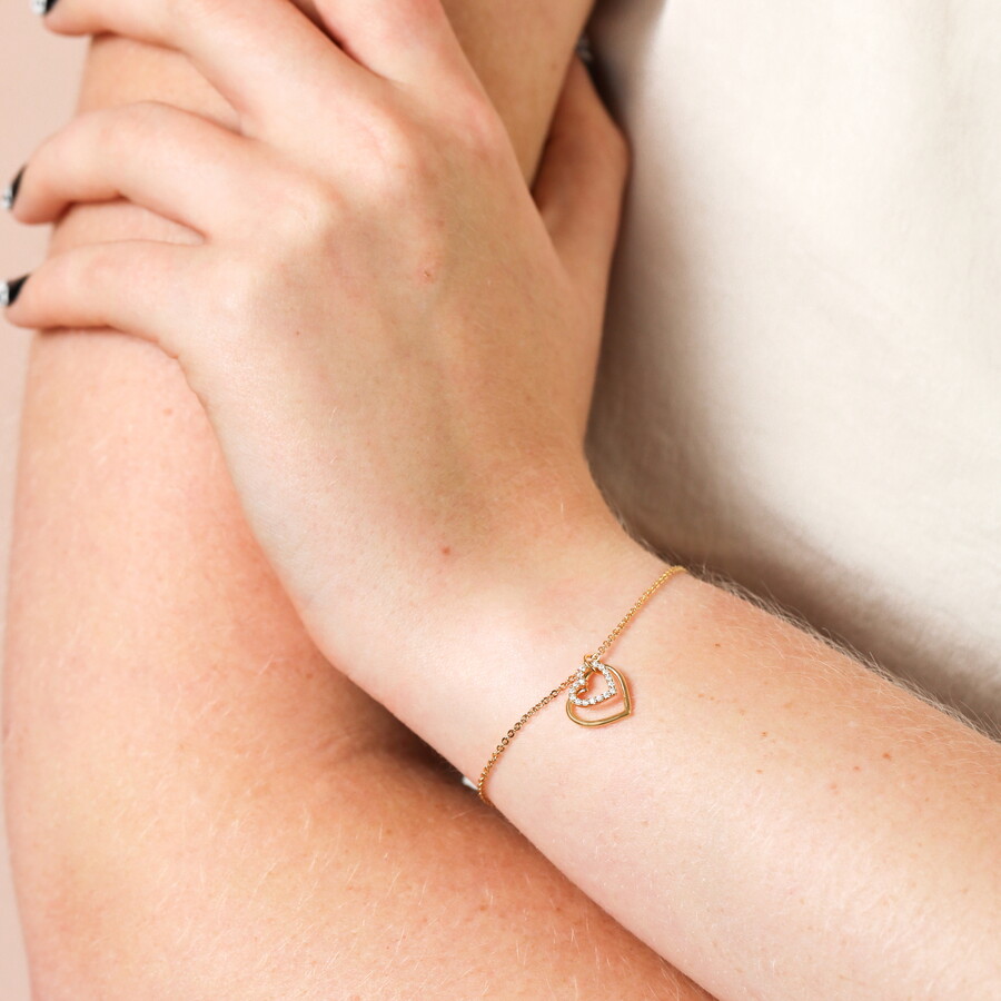Sterling Silver Interlocking Crystal Heart Charm Bracelet in Gold